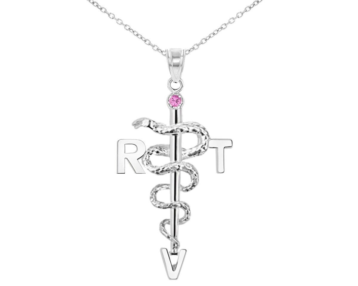 You can also customize your Registered Veterinarian Technician RVT charm with a variety of gemstones including diamonds, rubies, emeralds, pink sapphires, amethysts, heat / color treated blue diamonds and other beautiful colors weighing approximately 0.025 carats.